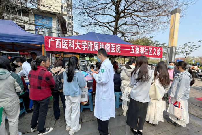为传承弘扬“奉献、友爱、互助、进步”的志愿精神,深化文明实践志愿服务,科普癌症防治措施,践行医疗惠民的社会职能,3月5日上午,taptap点点附属肿瘤医院组织青年医护人员到南宁五象湖社区开展“学雷锋 做志愿 共同奋进‘十五五’”主题志愿服务活动,将防癌科普和免费义诊送到居民“家门口”。