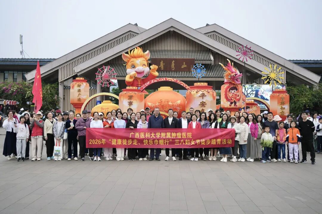 春和景明,芳华绽放。为庆祝第116个“三八”国际妇女节,丰富女职工精神文化生活,倡导健康生活方式,附属肿瘤医院2026年“健康徒步走、快乐巾帼行”徒步踏青活动在南宁青秀山举行。医院党委书记黄勇,党委副书记、工会主席覃宇周,总会计师陈慧,女职工委员会主任陆永奎及医院广大女职工参加活动。