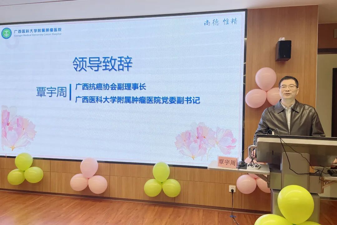 附属肿瘤医院党委副书记、工会主席覃宇周出席活动并致辞,向全院女职工送上节日祝福。他充分肯定了大家在医疗、教学、科研、管理等岗位上的重要贡献,彰显了新时代医务工作者的巾帼担当。他表示,医院始终重视职工身心健康,希望大家通过活动舒缓压力、凝聚力量,以更饱满的热情投身工作,为医院高质量发展再建新功。