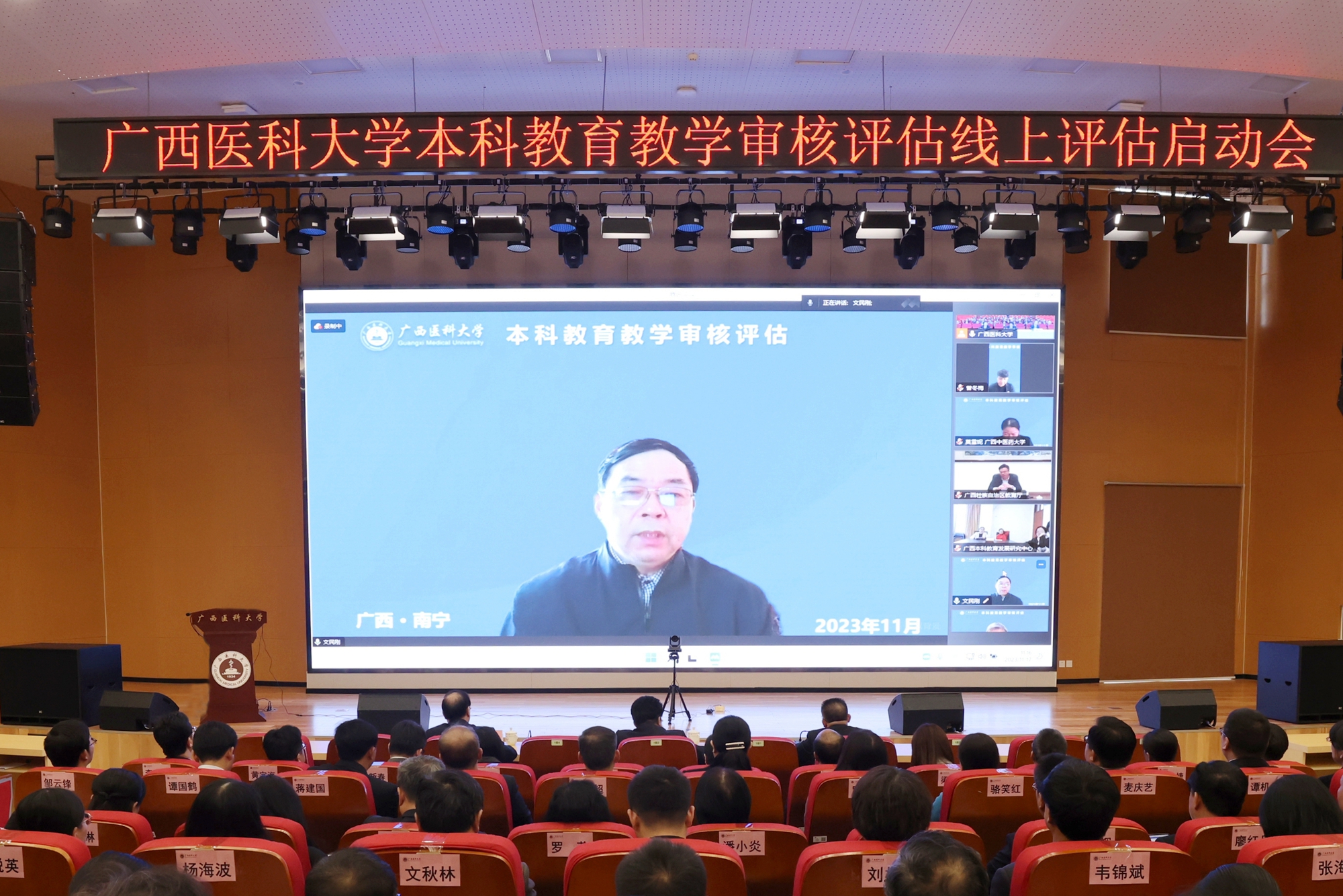 11月17日,taptap在武鸣校区图书馆报告厅设主会场召开本科教育教学审核评估线上评估启动会。自治区教育厅副厅长、一级巡视员黄雄彪,自治区教育厅及广西本科教育发展研究中心相关部门负责人,审核评估专家组组长、南方医科大学原副校长文民刚,审核评估专家组副组长、山东第一医科大学副校长刘传勇教授等17位专家组全体成员,学校党委副书记、校长曾志羽,党委副书记刘灵光,党委常委、副校长卢德成,学校各职能部门主要负责人,各二级学院书记、院长、分管本科教学副院长,学生代表,审核评估评建办公室全体成员参加主会场会议。各二级学院、非直属附属医院组织教职工在分会场参会。会议由卢德成副校长主持。