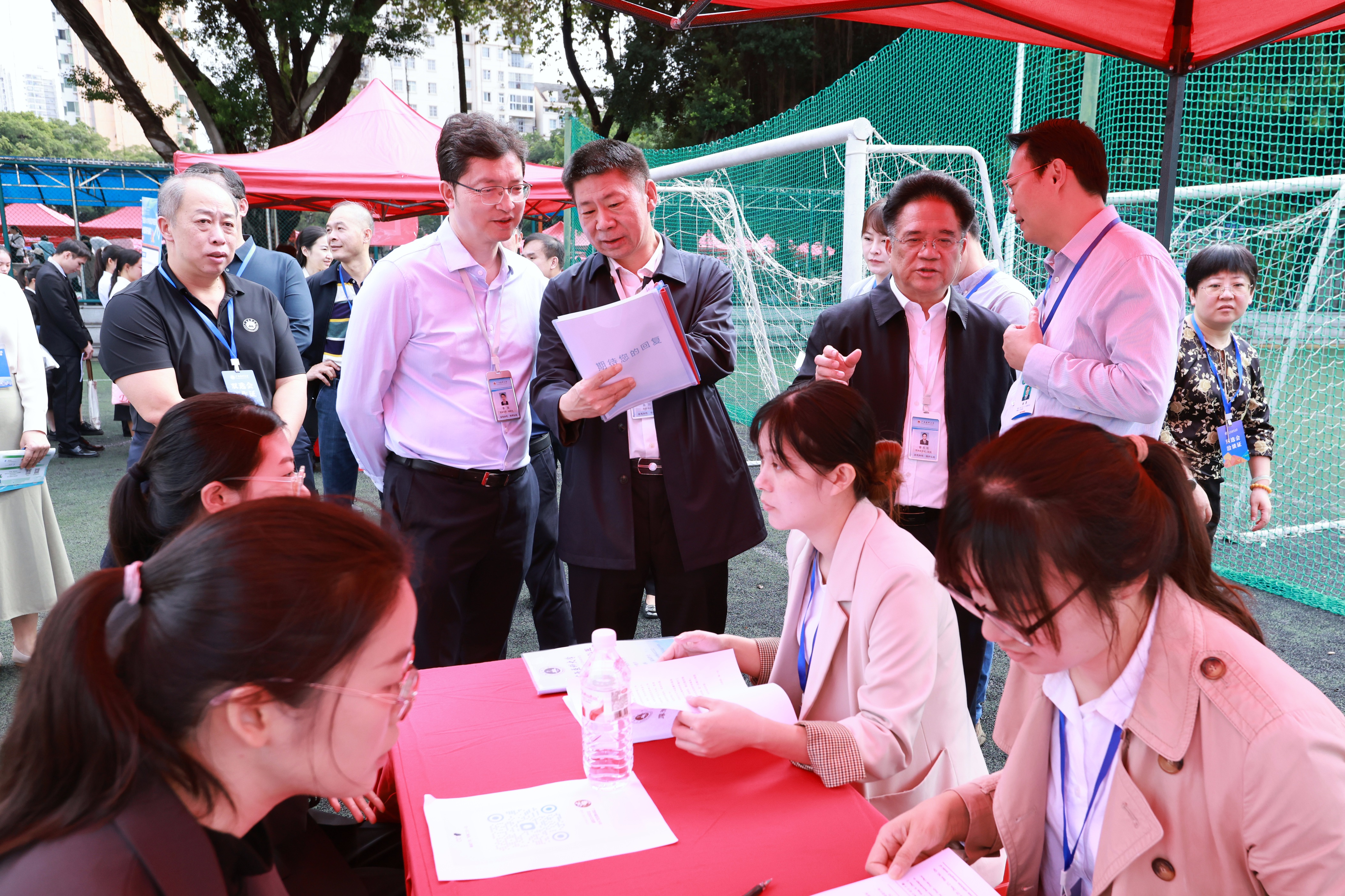 自治区教育厅党组成员、副厅长傅源方,学校党委书记陈川,校长曾志羽,副校长陈兴才、陈俊强、李浪,自治区卫生健康委人事处处长刘勇等领导现场与用人单位及求职毕业生交流,详细了解招聘需求,为毕业生求职就业提供指导。