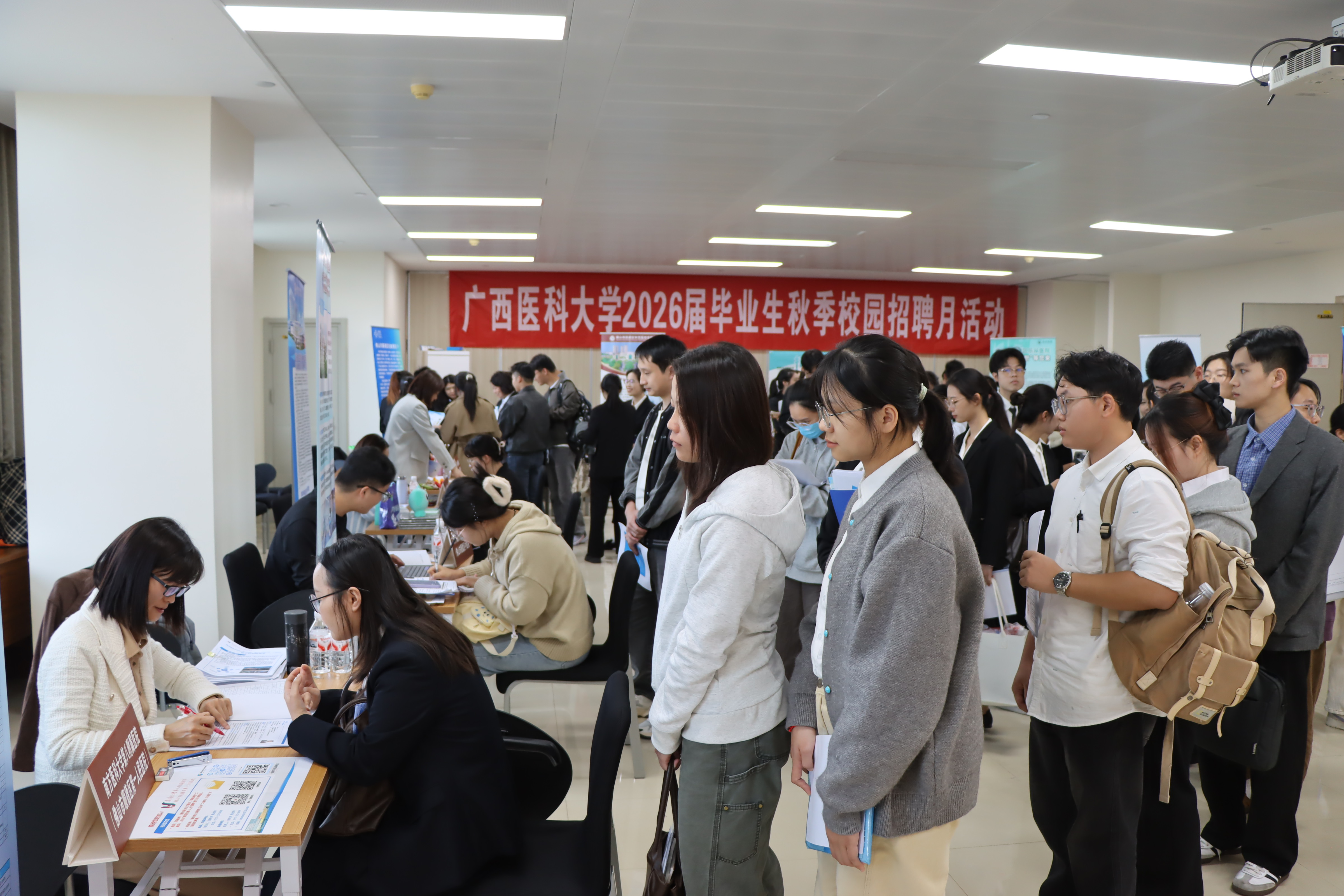 参与招聘的用人单位类型丰富多元、覆盖面广,涵盖广西柳药集团股份有限公司、深圳市科曼医疗设备有限公司、鲁南制药集团股份有限公司、上海君实生物医药科技股份有限公司、上海药明津石医药科技有限公司、苏州普蒂德生物医药科技有限公司等国内知名医药企业,以及柳州市人民医院、柳州市工人医院、梧州市工人医院、梧州市红十字会医院、玉林市红十字会医院、百色市人民医院、河池市人民医院、中山大学附属第八医院(深圳福田)、北京大学深圳医院(深圳市深汕人民医院)、香港大学深圳医院等区内外医疗卫生单位,同时专门邀请武警部队广西总队部队等单位进行文职招考宣讲,全方位为毕业生提供了丰富多元的职业选择,有效满足不同专业、不同求职意向学生的就业需求。