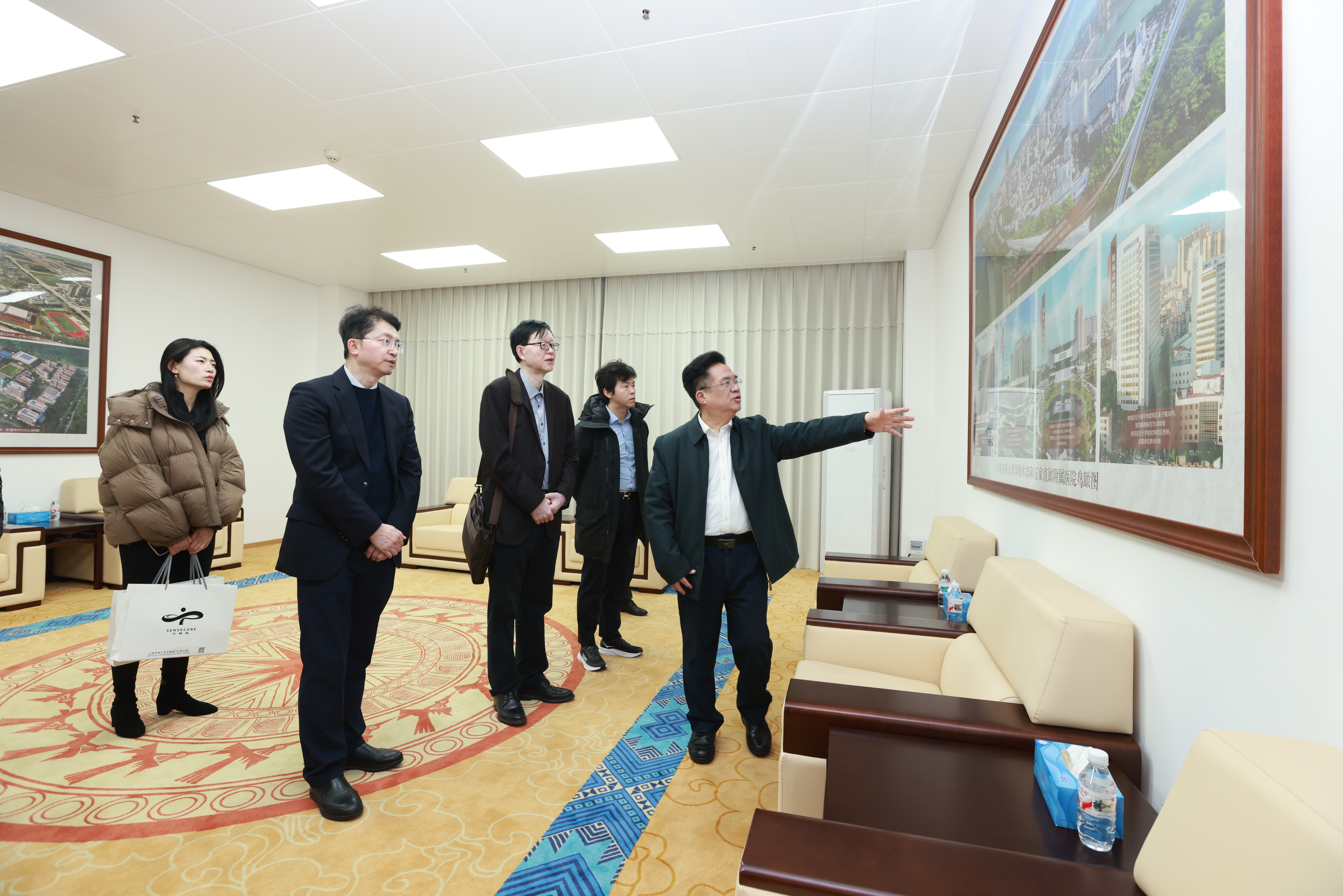 随后,双方围绕广西医学人工智能研究院的建设运营、医学人工智能技术的研发与场景应用、校企协同合作机制的构建等核心议题展开深入交流,针对研究院当前建设发展中面临的难点问题进行探讨,共同梳理出切实可行的解决思路与方案。