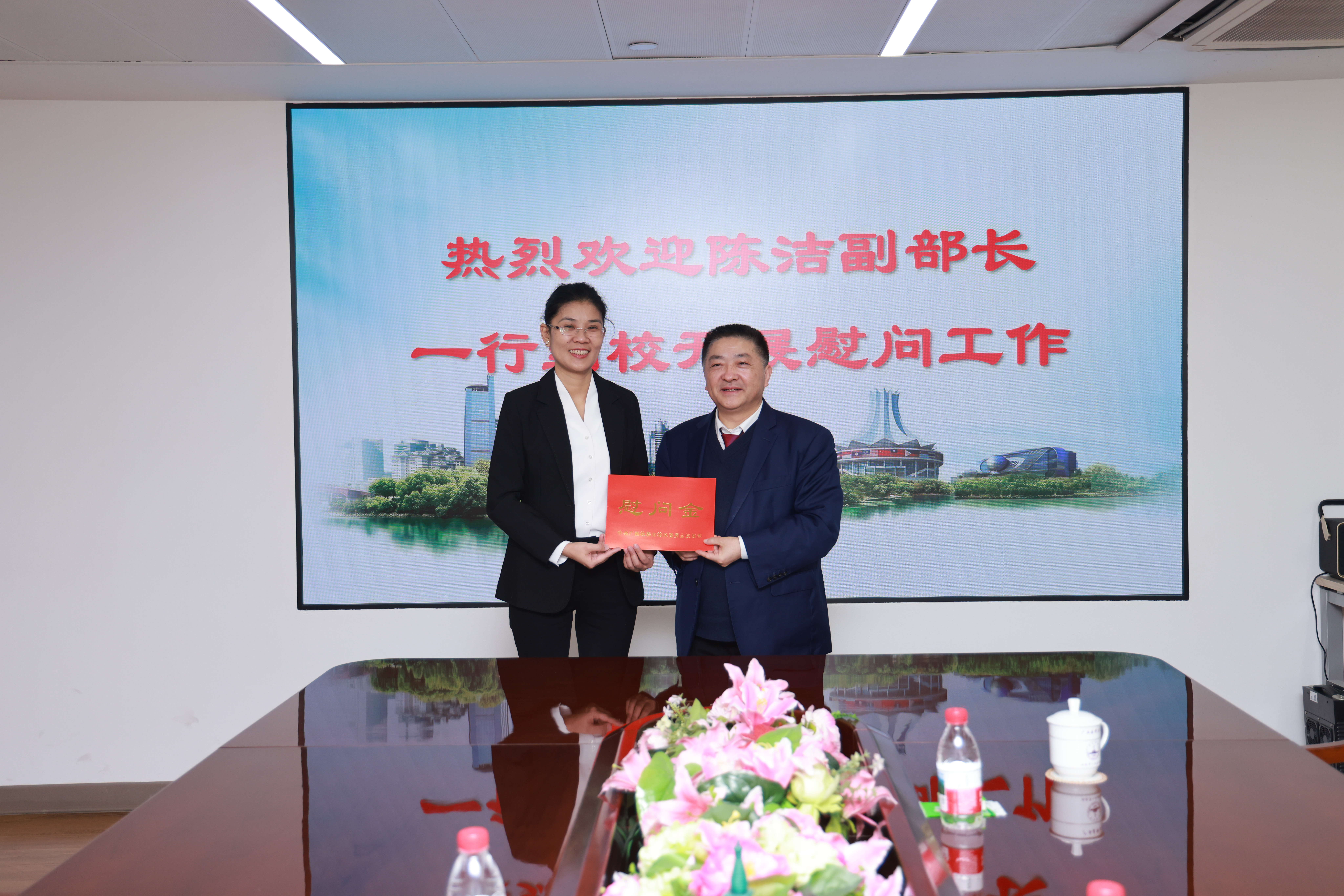 陈洁向赵永祥致以新春的问候和祝福,她肯定了赵永祥在推动国家重点实验室建设和科学研究等领域取得的卓越成绩,并衷心感谢他及其团队为广西医疗卫生教育事业和侨务事业作出的重要贡献。希望赵永祥教授立足岗位,潜心研究、打造团队,为广西医疗卫生和教育事业发展作出更大贡献。