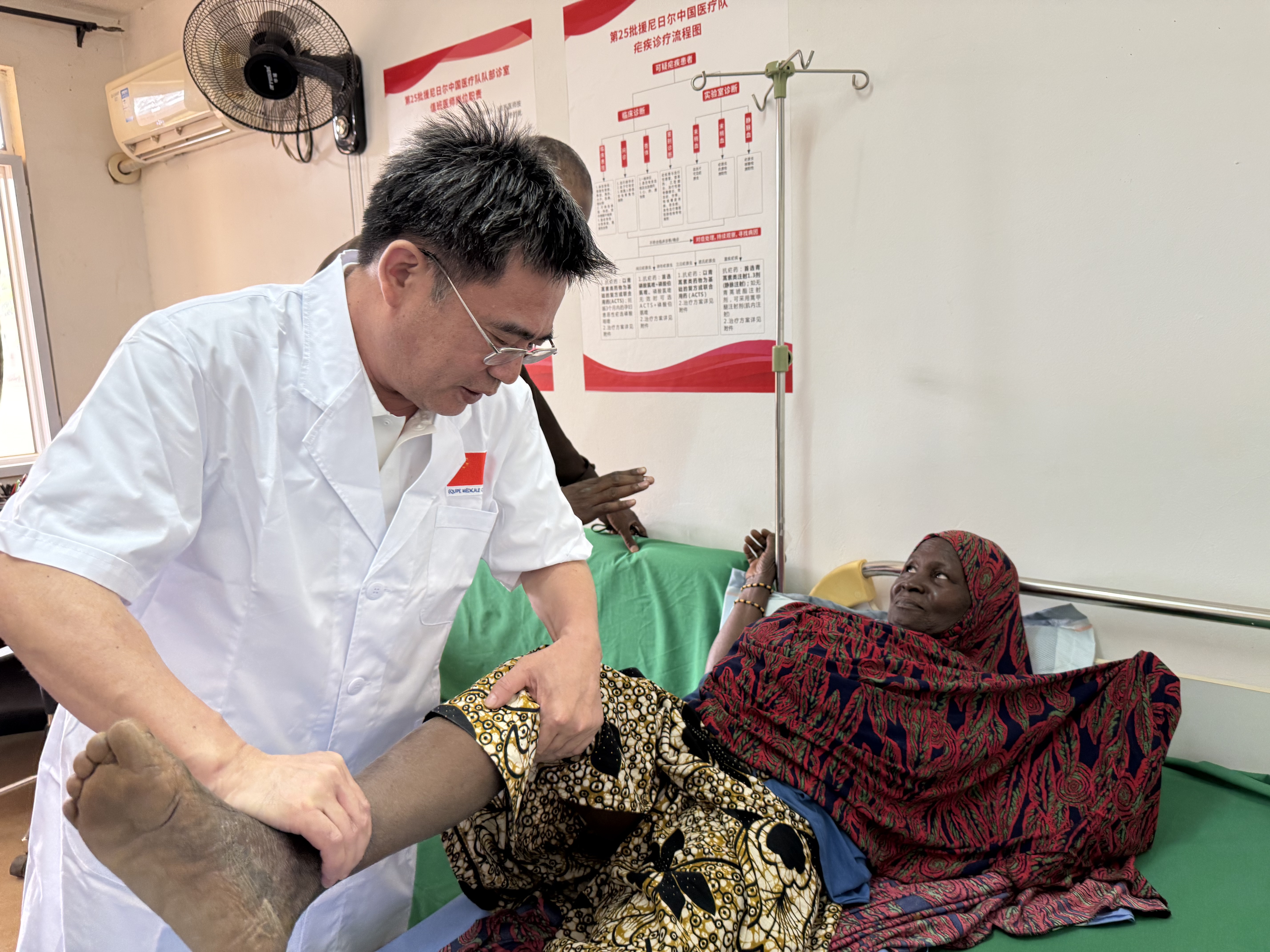 3月28日,taptap第25批援尼日尔中国医疗队以“医大援尼五十载,义诊惠民践初心”为主题,在医疗队队部驻地开展大型义诊活动,杜振宗、郑宝石、韦庆军坐诊。义诊现场开设心胸外科、骨科、中医科等多专科诊疗,提供血压血糖检测、中医特色诊疗、AI中医体质辨识等服务,开展CPR急救实操、传染病预防科普,为老人、儿童等特殊人群开设绿色通道。taptap队员耐心问诊,切实解决当地民众就医难题,以专业实力书写中尼守望相助的暖心故事,收集的诊疗数据也为后续精准帮扶、优化整建制援非模式提供科学参考。
