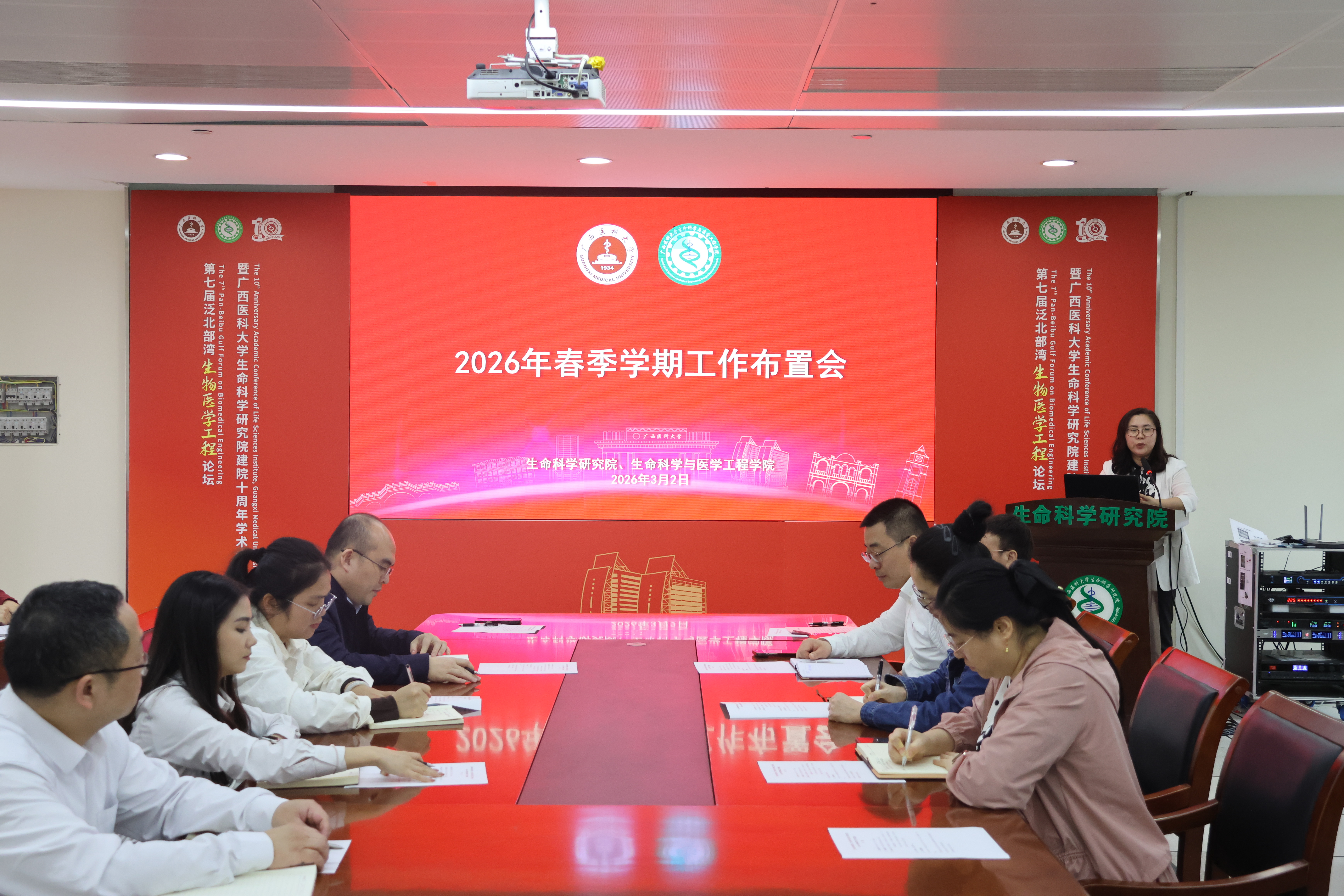 为传达学校新学期工作部署会议精神,明确新学期发展目标,3月2日下午,生命科学研究院、生命科学与医学工程学院在科技楼501会议室召开2026年春季学期工作布置会。学院党政领导班子,医学实验中心全体教职工、各研究中心/重点实验室负责人及代表参加了会议。会议由学院党委书记陈国湘主持。