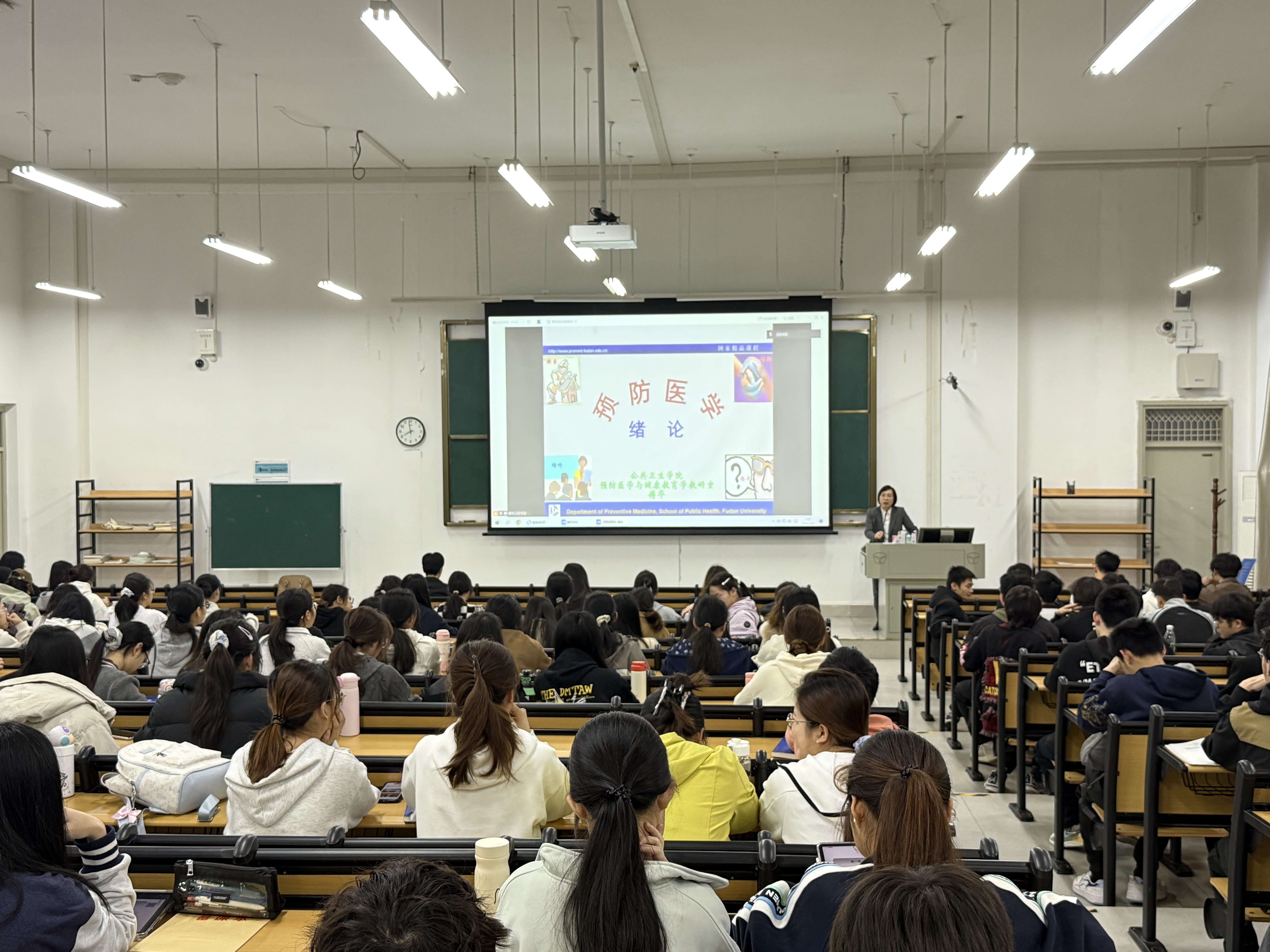 授课中,傅华以“环境-人群-健康”这一“生态健康模式”为主线,结合教材的核心内容,系统讲解了健康的组成、影响因素及预防策略的实施原则,梳理了学科经典理论,更融入了健康共治、健康素养促进、全球健康和健康中国等前沿思考,通过鲜活的案例将抽象理论与现实应用紧密结合。
