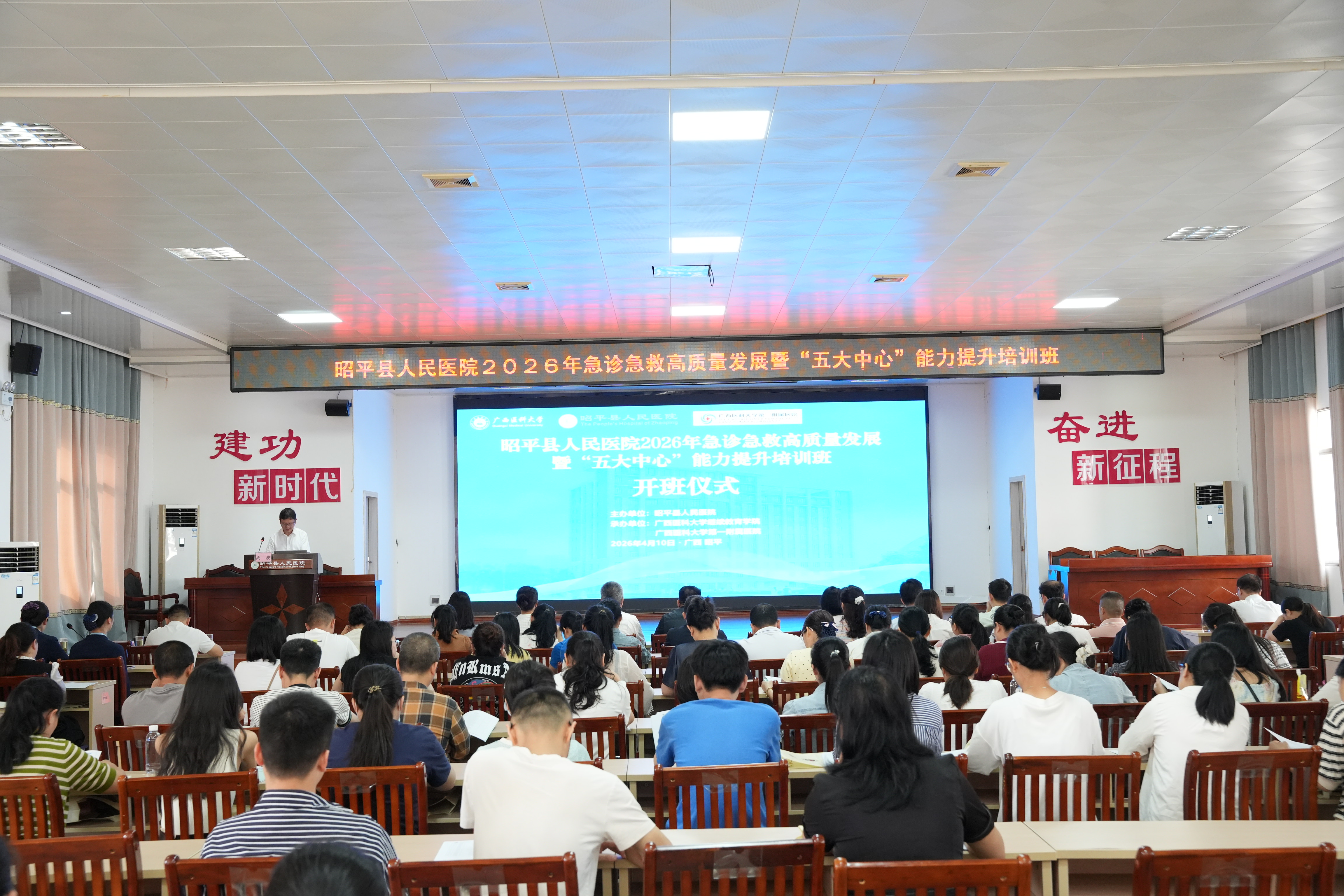 4月9日至4月11日,继续教育学院举办昭平县人民医院2026年急诊急救高质量发展暨“五大中心”能力提升培训班。昭平县卫生健康局副局长黎承南,昭平县人民医院党委书记覃一玲、院长农乐关,继续教育学院院长周波等出席开班仪式并致辞。培训班共有200余人参加。
