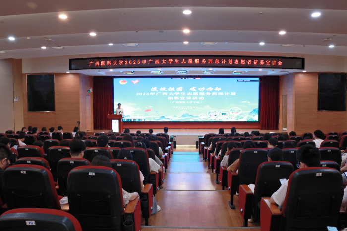 4月13日,2026年广西大学生志愿服务西部计划招募宣讲活动在校本部举办。各二级学院团委书记、2026届应届毕业生及对西部计划感兴趣的在校生到场参会。校本部、玉林校区设分会场同步直播。