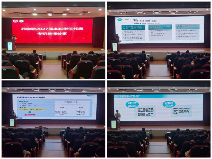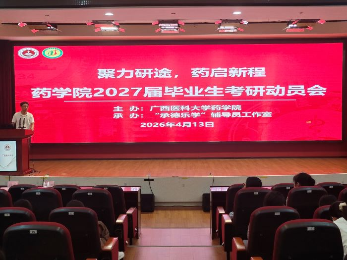 为鼓励学院2027届毕业生积极投身考研,提振备考热情与信心,解答备考过程中的各类疑惑,4月13日,药学院于科技楼报告厅召开2027届毕业生考研动员大会。药学院院长阳洁、党委副书记林晓、学工办主任谭斌出席会议,会议由林晓主持,辅导员刘乃钰,2027届全体毕业生共330余人参会。