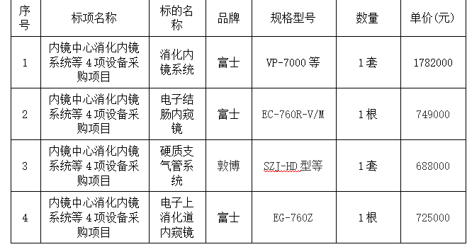二、项目名称:内镜中心消化内镜系统等4项设备采购项目
