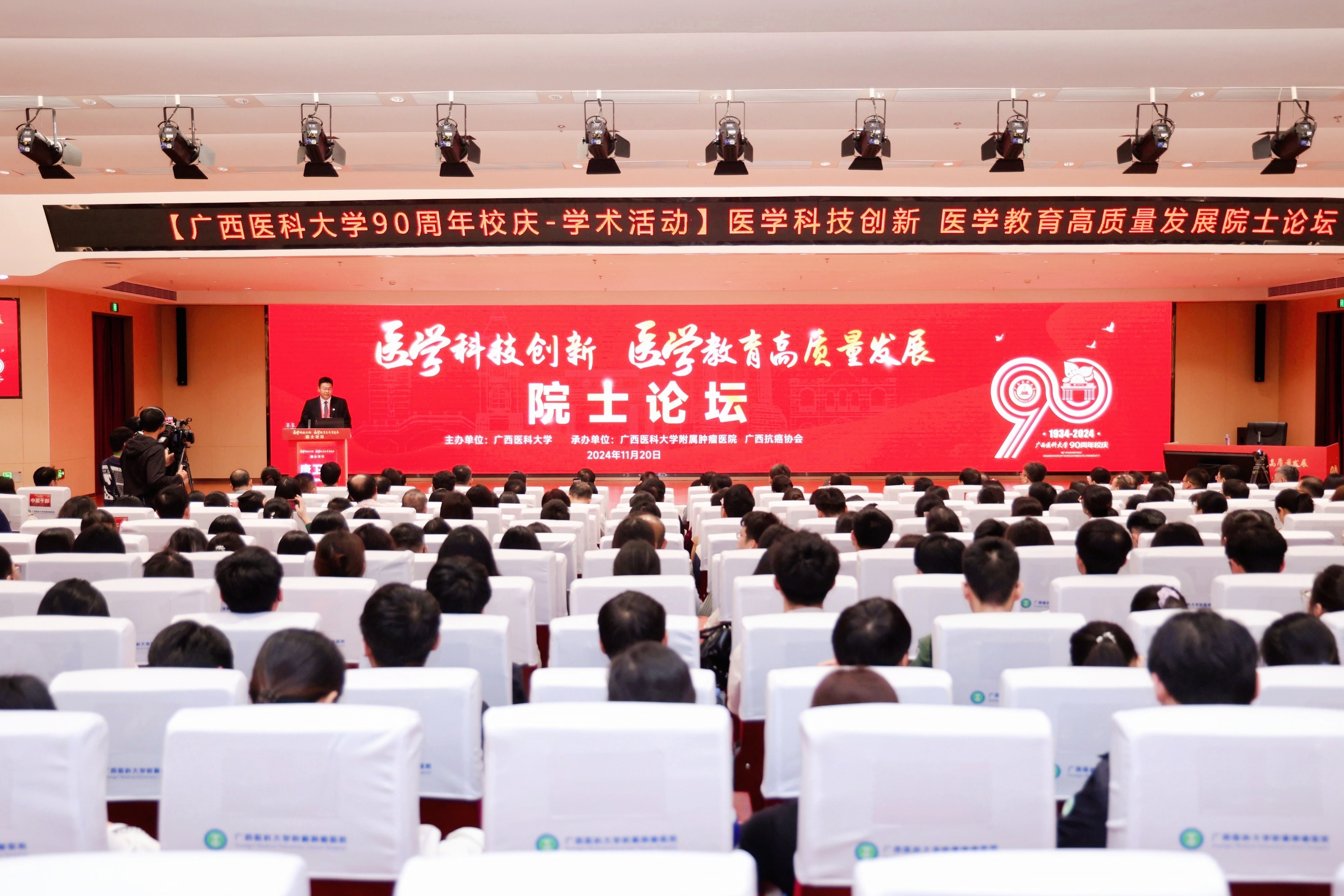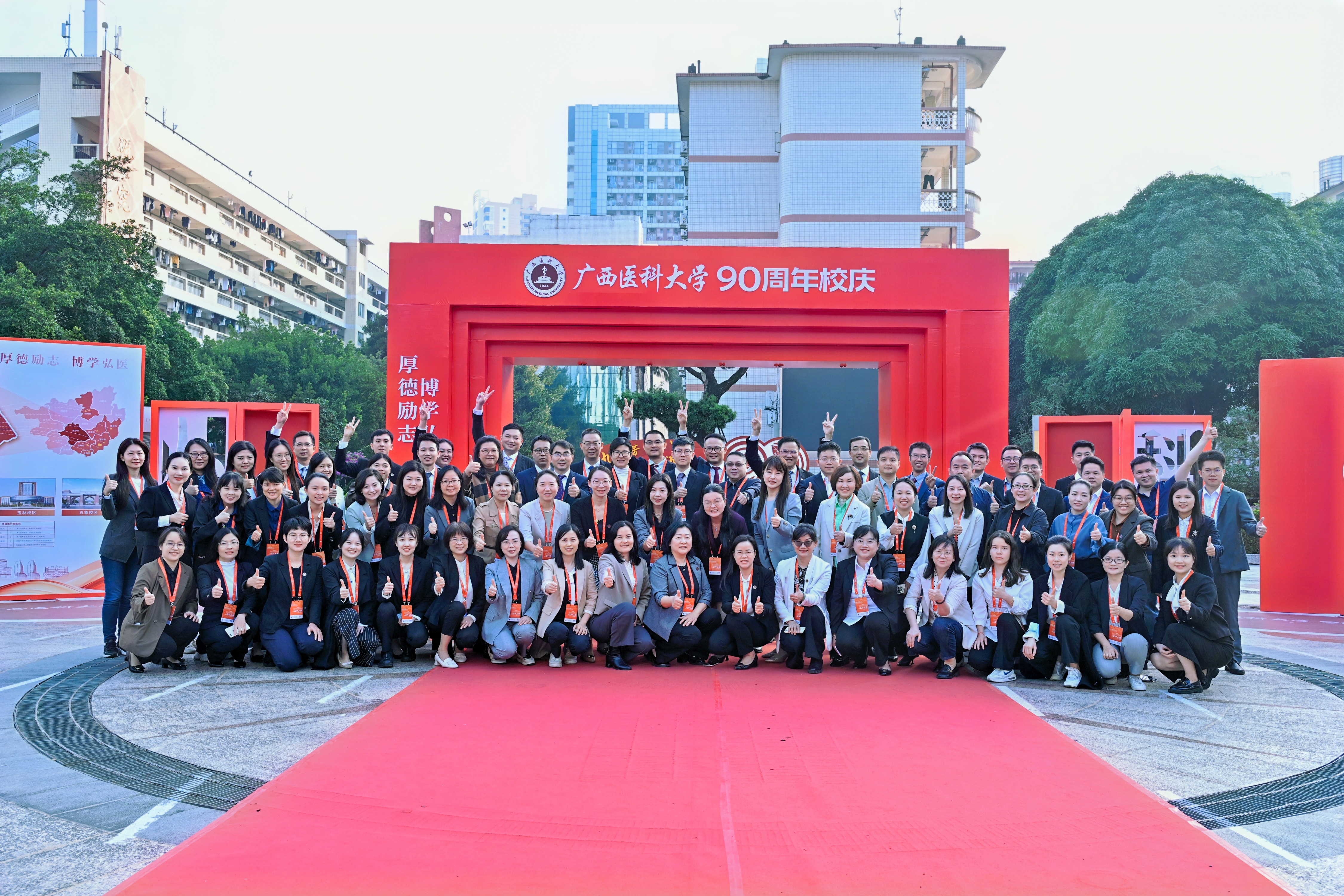 11月21日,taptap迎来了建校90周年华诞。在建校90周年校庆之际,为营造校庆浓郁学术氛围、厚植创新文化沃土、弘扬科学家精神,学校启动了“90周年校庆—名家讲坛”系列讲座,截至今年11月,共邀请美国、德国、新加坡等113位国内外院士、知名专家走进“名家讲坛”,他们的深刻见解和前瞻性思维为学校科研人员提供了宝贵的启示和灵感。为进一步传承学术传统,展现新时代的医大风貌,学校科技处会同各二级学院于11月18日—24日校庆期间,以“医学科技创新 医学教育高质量发展”为主题,分别邀请樊代明、廖万清、丁健、程京、尚永丰、蒲慕明、詹启敏、林东昕、陈孝平、樊嘉、陈子江、王俊、张学、董晨、赵铱民、王以政、林圣彩、顾宁、李劲松、马骏、黄晓军等21位院士以及28位杰青、长江等高层次人才开展院士论坛、院士手术演示和系列高水平学术活动15场,为学校90周年华诞献上学术盛宴,中新社、光明日报、中国青年报、广西日报、广西广播电视台等中央及自治区主流媒体关注并报道。