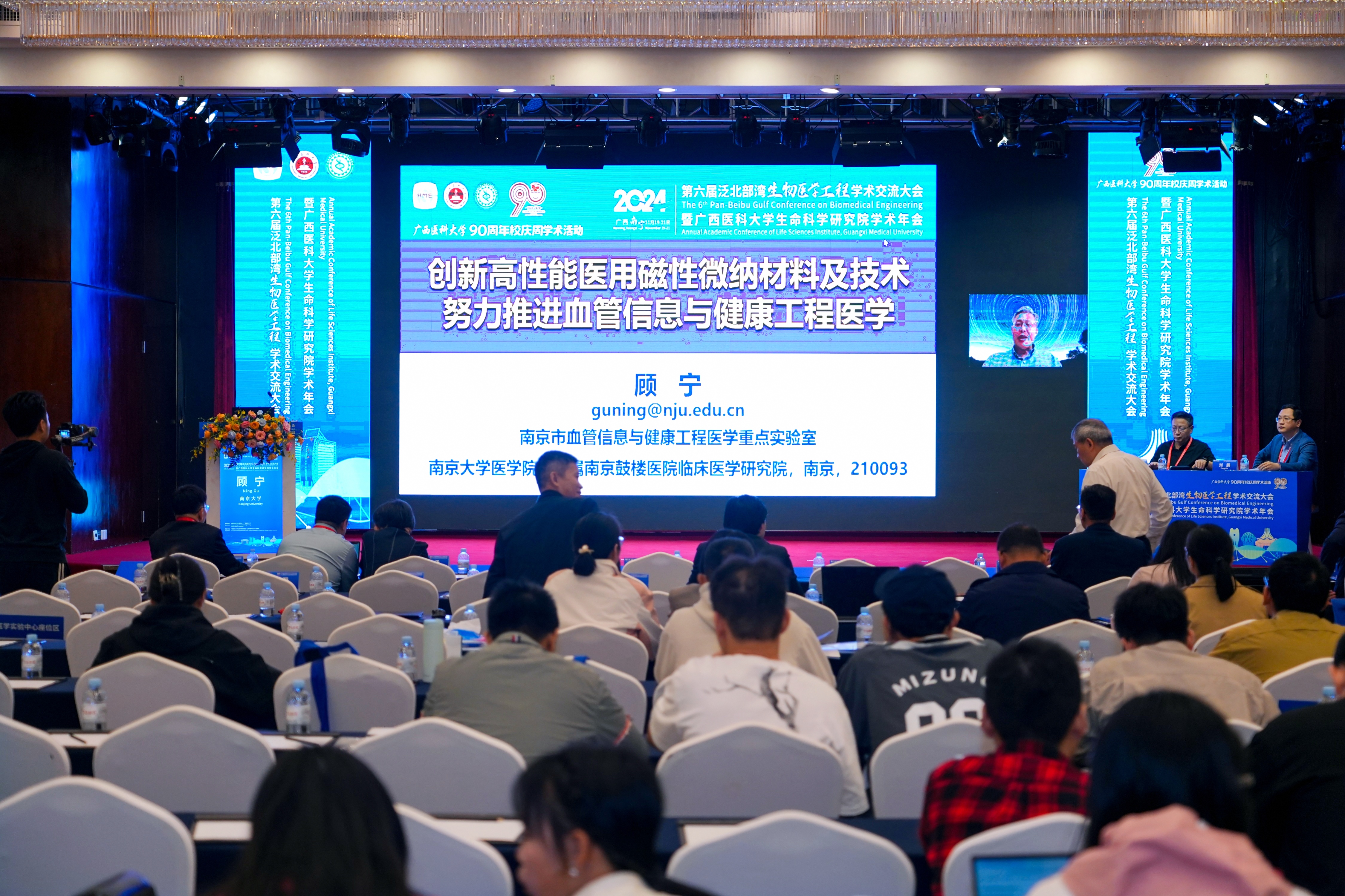 ▲顾宁院士作题为《创新高性能医用磁性微纳材料及技术努力推进血管信息与健康工程医学》的报告(线上)