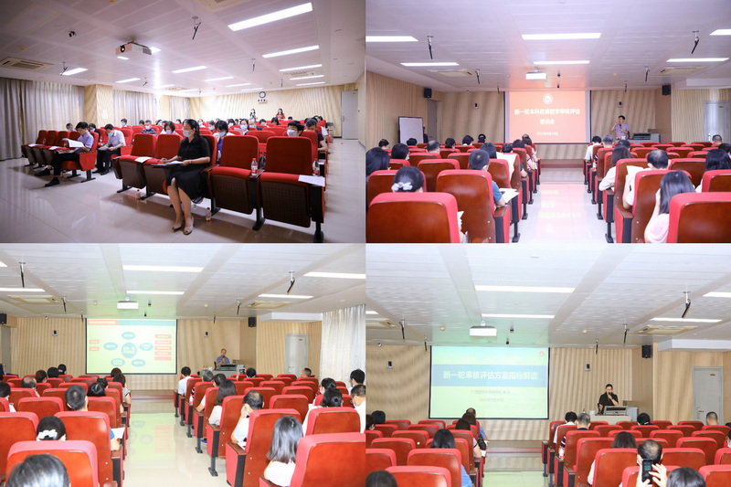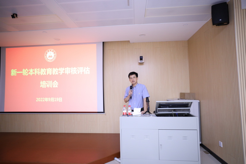 接着,教务处刘登宇处长介绍了本科教育教学评估的地位、作用、发展历程及新一轮审核评估的变化,并从评估方案、评估特点及评估流程等三个方面系统介绍了新一轮本科教育教学审核评估的基本情况、主要任务及工作重点。教务处贾冰副处长以《新一轮审核评估方案指标解读》为题,通过对比学校近三年本科教学基本状态数据基本情况,对此轮评估的第二类第1种审核评估体系、76个评估标准及内涵、评估主要内容一一进行了详细解读。