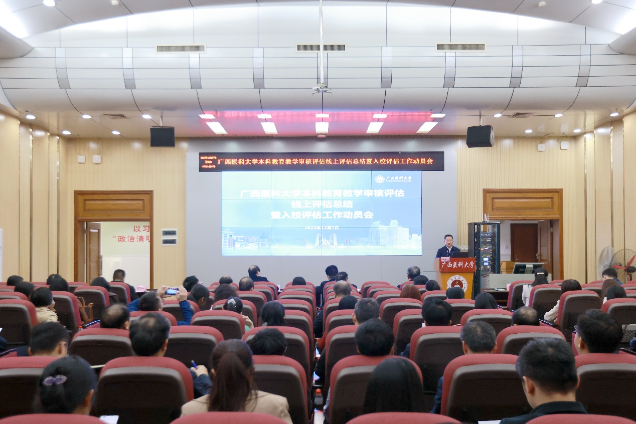 12月7日下午,taptap在南宁-校本部综合楼9楼报告厅召开本科教育教学审核评估线上评估总结暨入校评估工作动员会。校长曾志羽,校党委副书记刘灵光,驻校纪检监察组组长韦敏观,副校长卢德成,副校长唐卫中,入校评估各专项工作组,各职能部门主要领导及联络员,二级学院院长、分管教学副院长及教研科科长,审核评估评建办公室全体成员等130余人参加会议。会议由副校长卢德成主持。