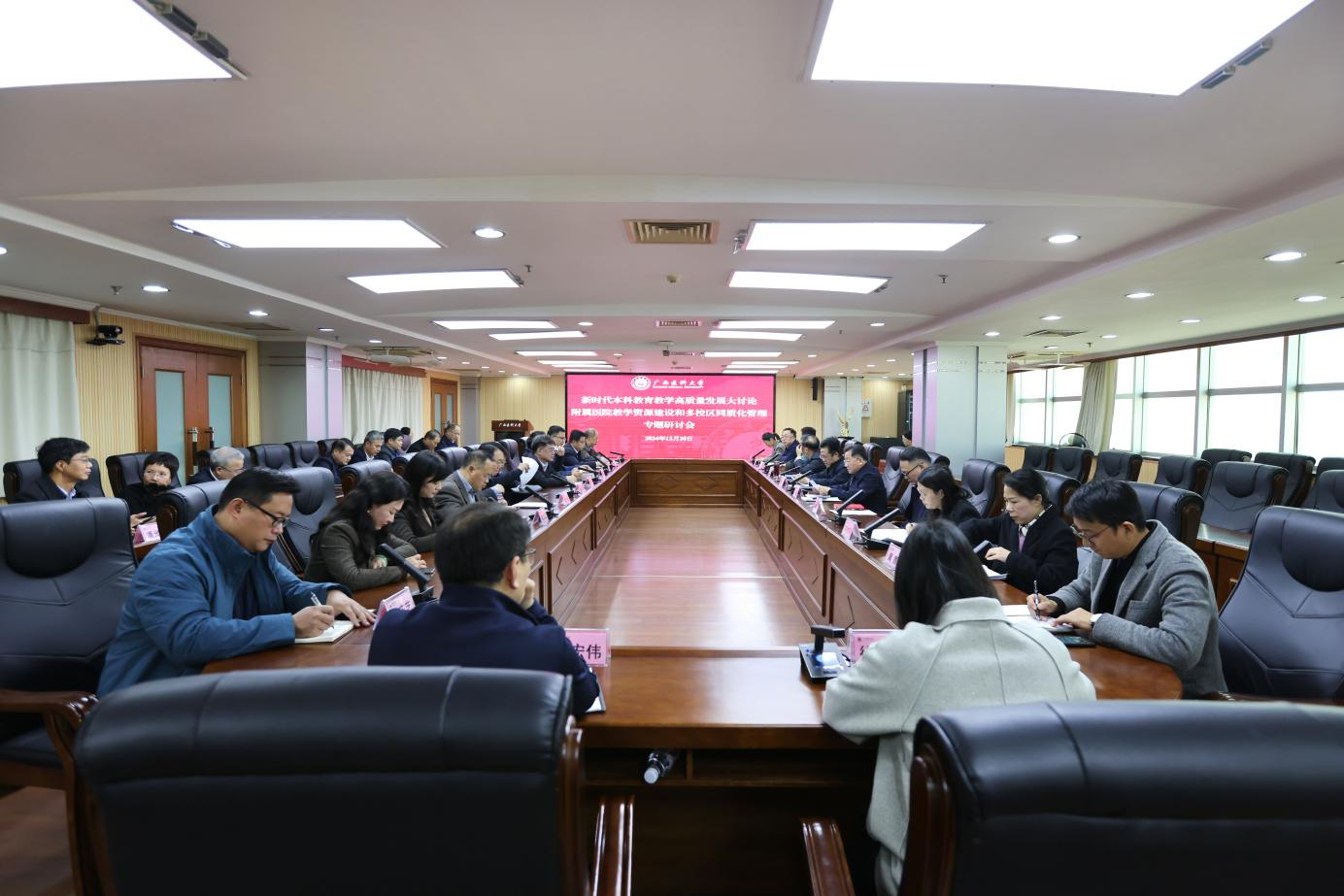 附属医院教学资源建设和多校区同质化管理两个专题研讨依次进行。教务处作附属医院教学资源建设专题报告,汇报了临床教学基地承担教学任务情况、临床教学条件情况以及临床教学的存在问题。各附属医院就临床教学资源建设有关问题进行了交流发言。武鸣校区管理中心、玉林校区管理中心分别作校区同质化管理专题报告,汇报了新校区运行发展情况以及当前新校区在协同管理、学术氛围营造、校园文化建设、信息化建设以及教师队伍建设、教学同质化管理、实验教学条件建设等方面的存在问题和下一步工作计划。职能部门就加强多校区同质化管理进行了交流研讨。