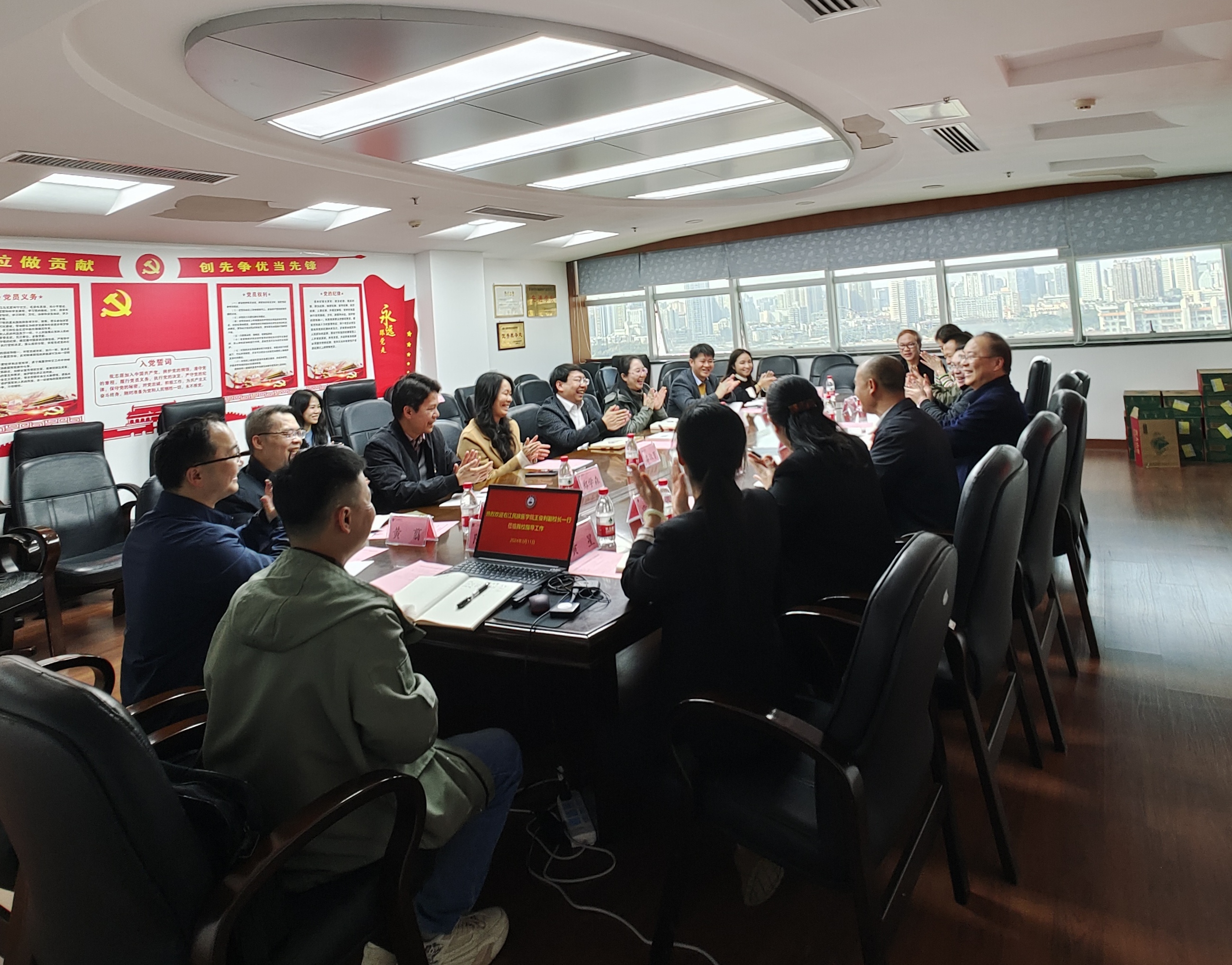 3月11日下午,右江民族医学院副校长王俊利一行11人来访taptap交流本科教育教学审核评估工作经验。座谈会在南宁—校本部综合楼12楼会议室举行,学校党委副书记刘灵光,教务处、校长办公室、教育评价与教师发展中心等部门负责人及工作人员参加会议。会议由教务处刘登宇处长主持。