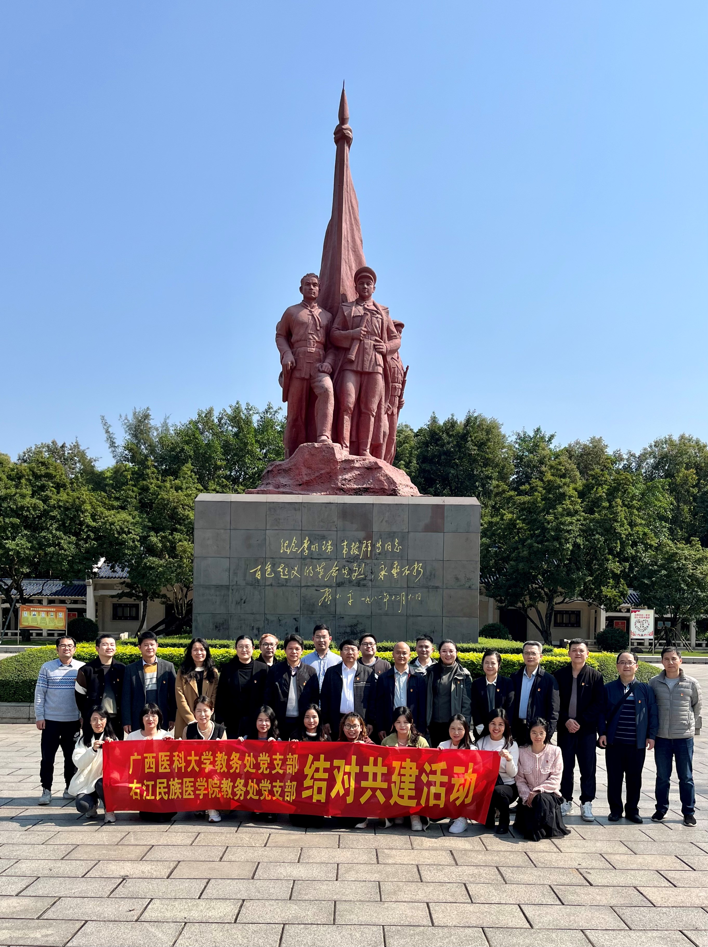 当天,右江民族医学院教务处党支部和taptap点点教务处党支部在李明瑞、韦拔群等革命烈士纪念馆开展了结对共建活动。