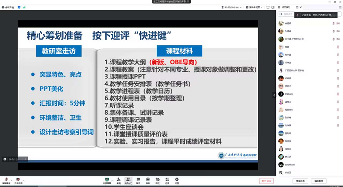为有效推进本科教育教学审核评估各项工作顺利开展,根据学校本科教育教学审核评估预评估工作布置会的相关工作部署及要求,10月7日晚,我院线上召开了本科教育教学审核评估预评估工作布置会。学院副院长罗彬,院办、教研科、学工办、院内各教研室和平台正副主任、教学秘书参加了本次会议。