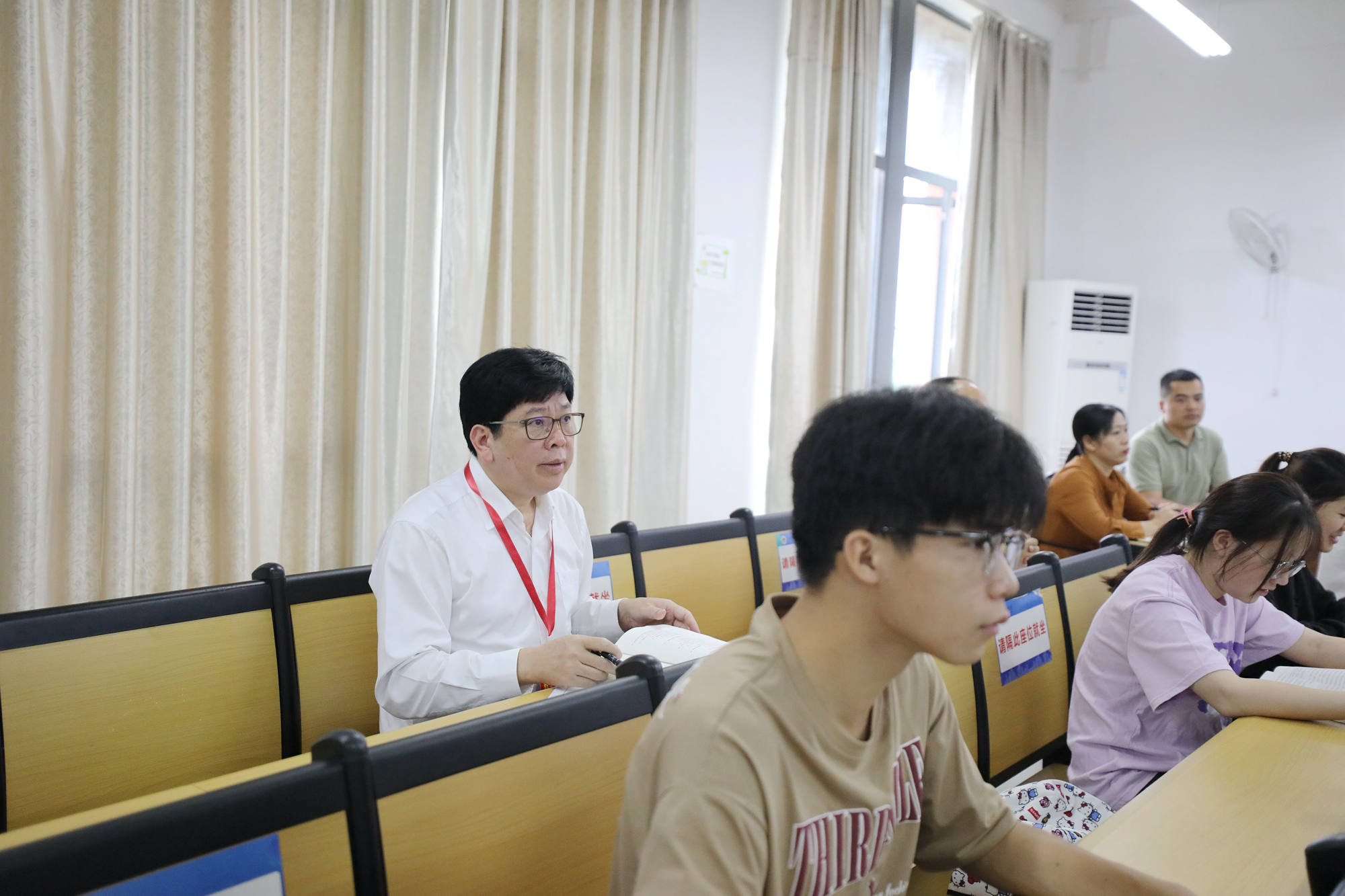8月28日至9月1日,各学院有序开展开学前教学准备活动。曾志羽校长带队检查指导公共卫生学院、信息与管理学院、人文社会科学学院的教学工作会议、教研室集体备课、新教师试讲等相关教学活动。校领导曾小云、陈兴才、卢德成、陈俊强、唐卫中分别到其联系学院检查指导。校领导对各单位开学前各项准备工作安排到位予以肯定。