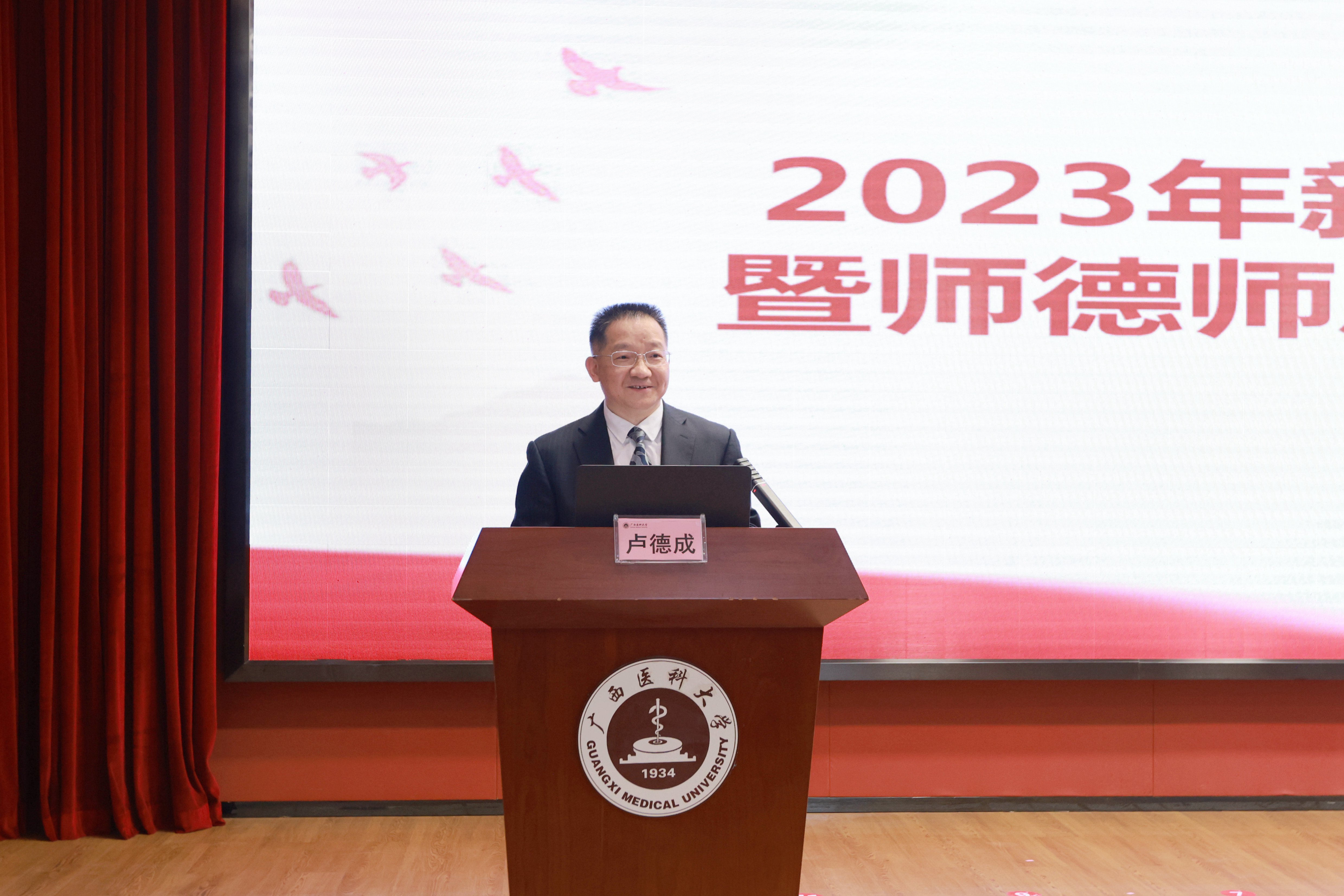 曾志羽校长以《奋斗在医大 共赢迎未来》为题进行专题授课,结合自己在医大40年的学习工作经历,从医大是一所什么样的学校、医大能为大家提供什么样的发展舞台、医大人的肩上承担着何种使命和责任三方面展开。曾志羽校长指出,医大是一所有家国情怀、有红色基因、有过硬实力、正在奋力发展的大学,可以为新职工们提供舞台,也希望大家牢记使命、教书育人,修养品格、身正为范,潜心治学、努力出彩,心存敬畏、坚守底线,不忘初心使命,不惧风霜雨雪,全力跑好你们这一代人的接力棒,跑出加速度、跑出真风采、跑出好成绩。
