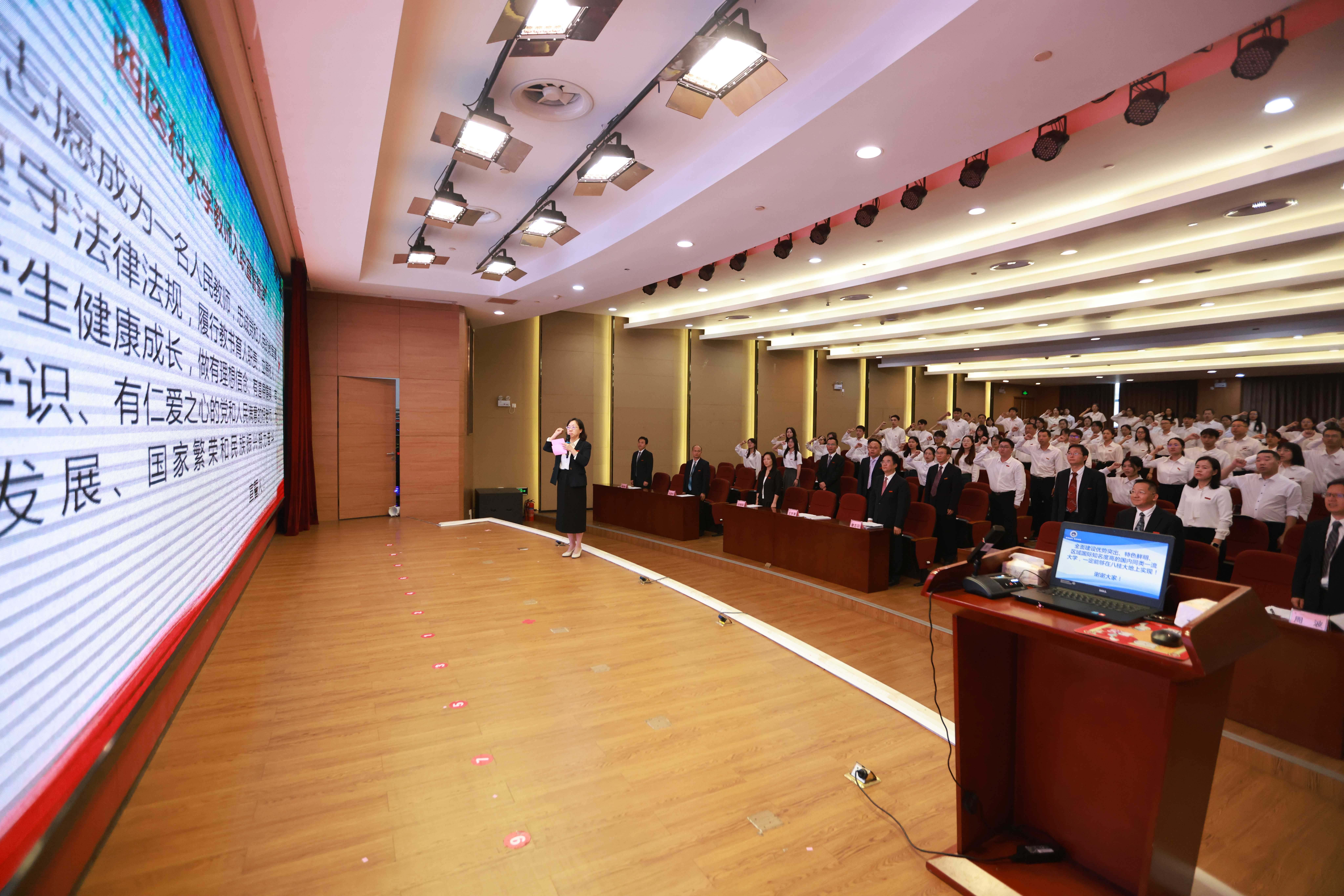 开班仪式上,在学校党委宣传部、教师工作部部长王宇清的领誓下,全体新职工举起右手庄严宣读《taptap点点教师入职宣誓誓词》,用铮铮誓言作出庄严承诺,表示将不忘育人初心,践行育人使命。