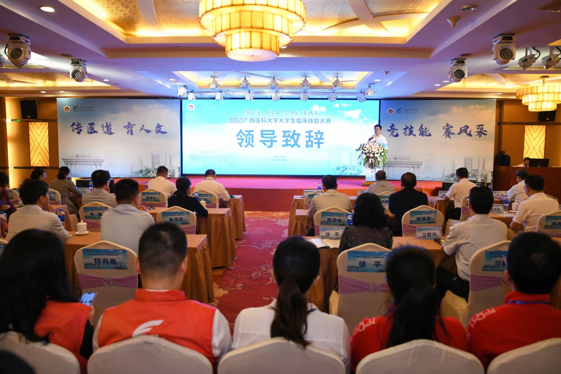 2023年10月14日,taptap点点第十届大学生临床技能竞赛在贵港举行。竞赛以“传医道、育人文、竞技能、赛风采”为主题,来自taptap18家临床教学基地的23支参赛代表队、92名2019级临床医学类专业学生参加此次比赛,79名临床教师担任裁判。曾志羽校长、卢德成副校长、教务处负责人和各教学基地领导、教师到场观摩指导。