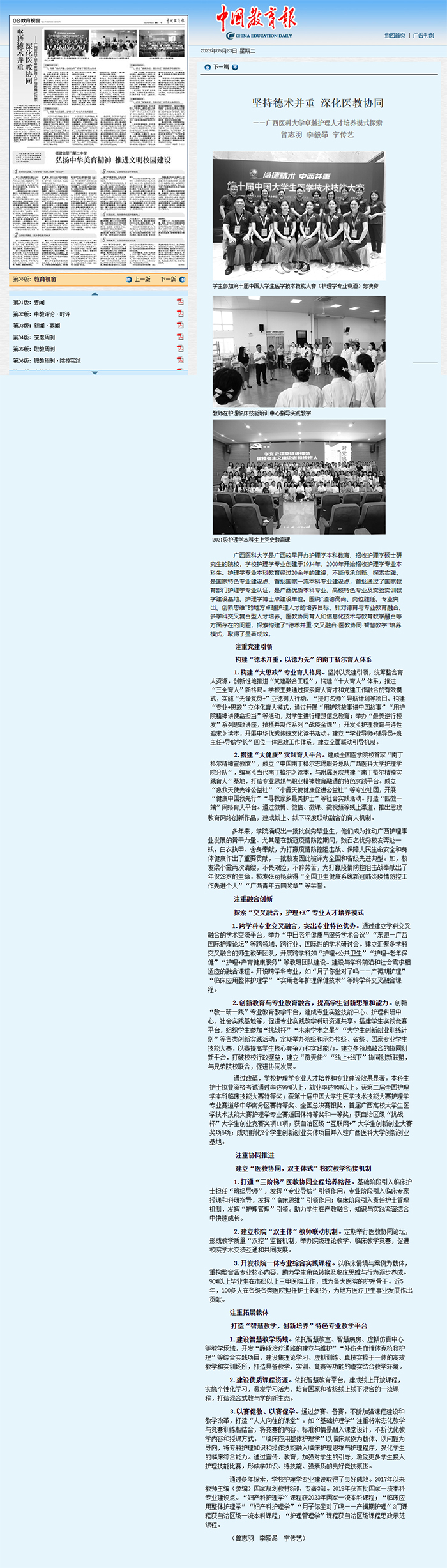 《中国教育报》:坚持德术并重 深化医教协同 ——taptap点点卓越护理人才培养模式探索
