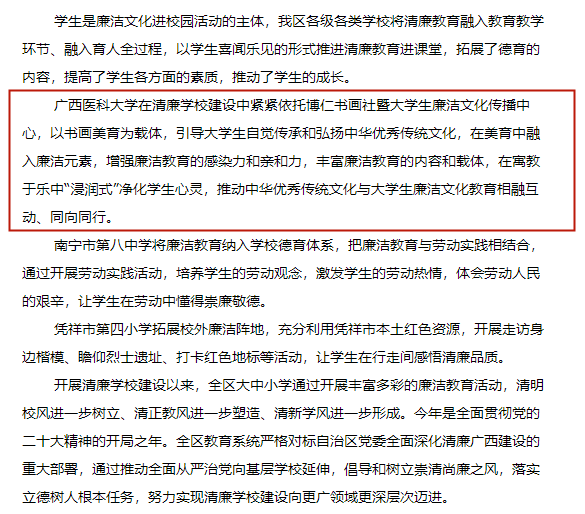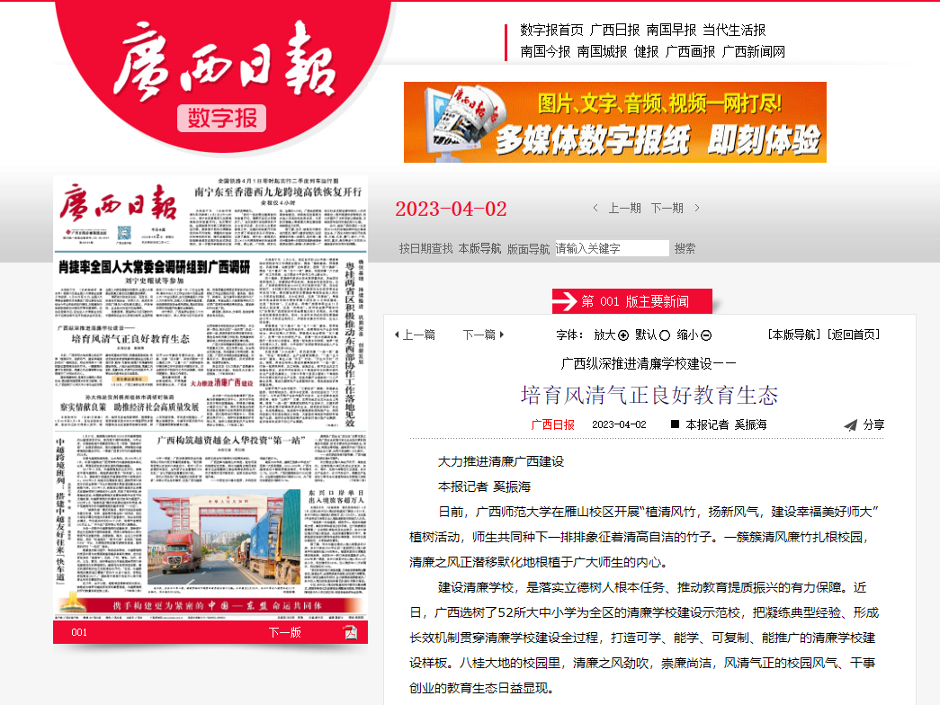 《广西日报》:广西纵深推进清廉学校建设——培育风清气正良好教育生态