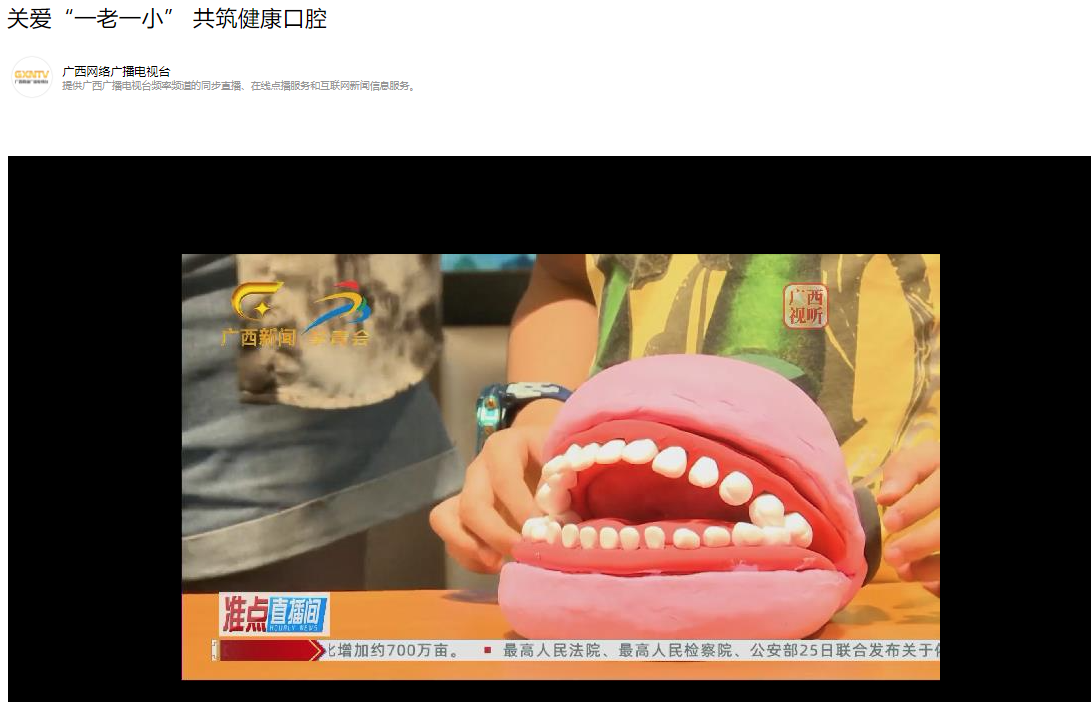 9月24日,广西口腔医学会主办与taptap点点附属口腔医院承办联合举办了以“口腔健康 全身健康”为主题,以“关爱老年口腔 乐享健康生活”为副主题的“9·20全国爱牙日”暨恒牙全脱出自我急救技术大比拼活动。广西网络广播电视台以《关爱“一老一小” 共筑健康口腔》为题,对活动进行了视频报道。