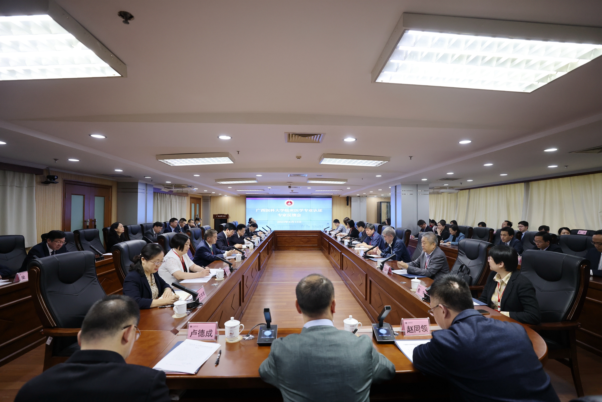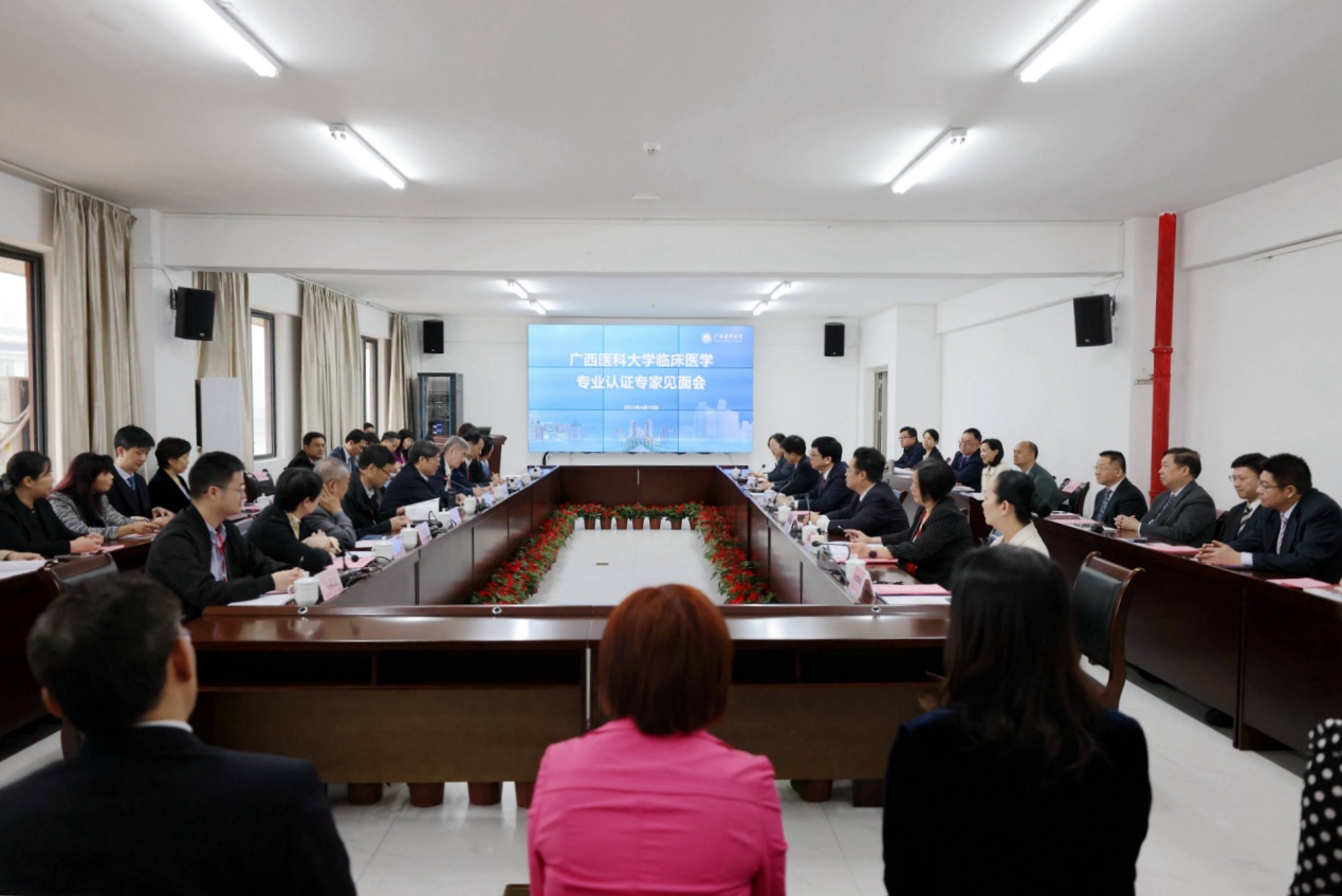 4月10日上午,学校在南宁—武鸣校区综合楼404会议室举行临床医学专业认证见面会。吕兆丰教授等专家组成员、学校党委书记黄照权、校长曾志羽、副校长伍伟锋、副校长曾小云以及各二级学院、职能部门、直属单位负责人、教师代表和学生代表参会。副校长伍伟锋主持会议。